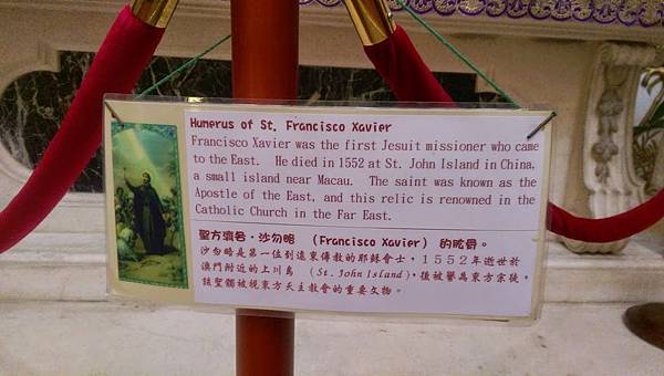 然後這個教堂他還放了某個傳教士的手骨