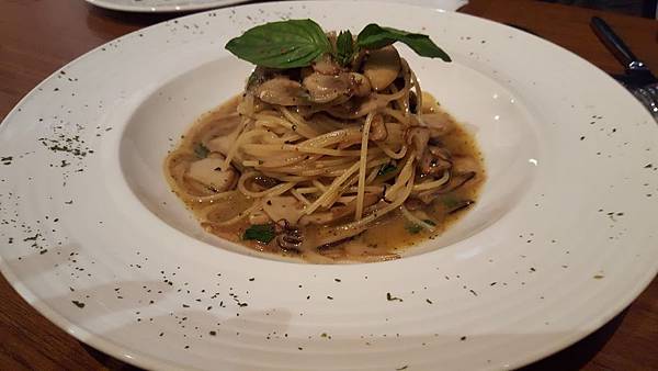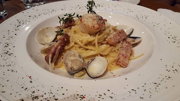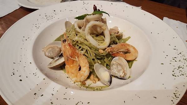 其實第三道鮮蝦墨魚蛤犡青醬麵