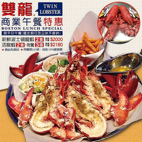 新鮮波士頓龍蝦 & 3附餐(可+550升級豪華龍蝦海鮮盤)