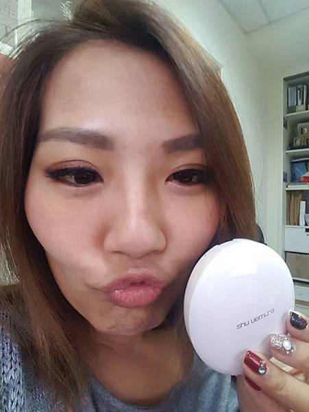 今天我用UV泡沫CC慕斯打底後就上鑽石光晶透粉餅了