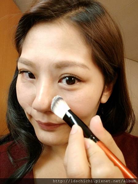 Step2.將打亮色與修容色,劃於T字及輪廓線