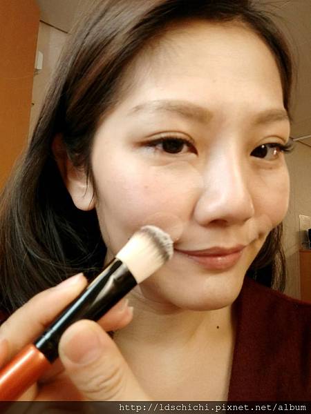 Step3.使用腮紅色輕抹於顴骨,打造紅潤好氣色