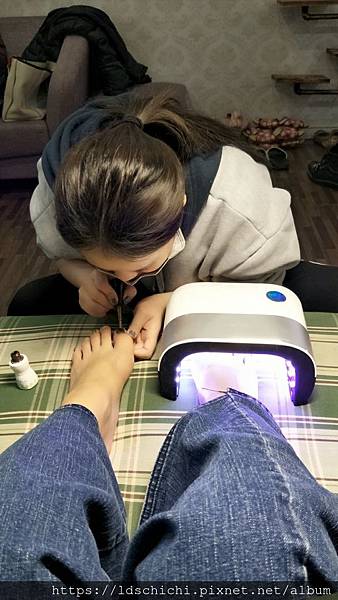 我覺得做足部光療美甲師都好辛苦~要一直彎腰~
