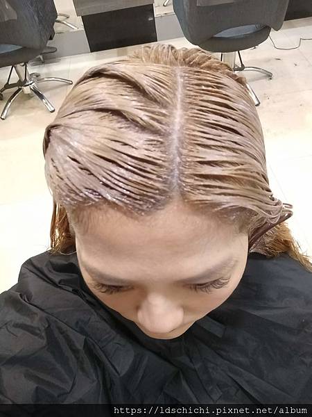 順序是先染髮根的奶茶香檳