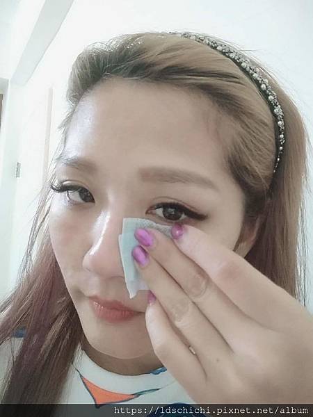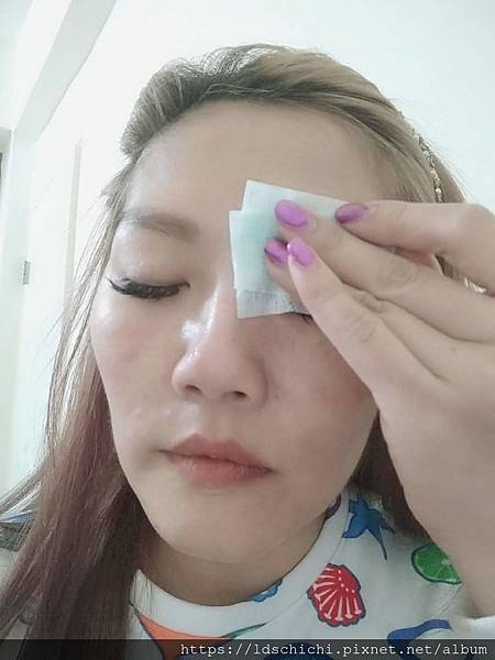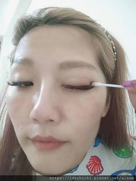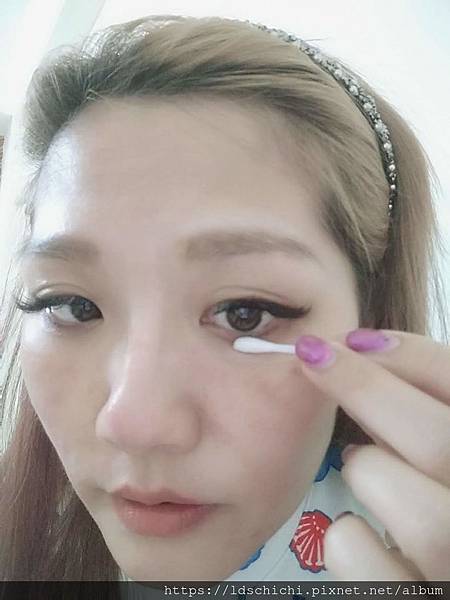 眼線也是用棉花棒吸取雪芙蘭保濕卸妝水來回數次~