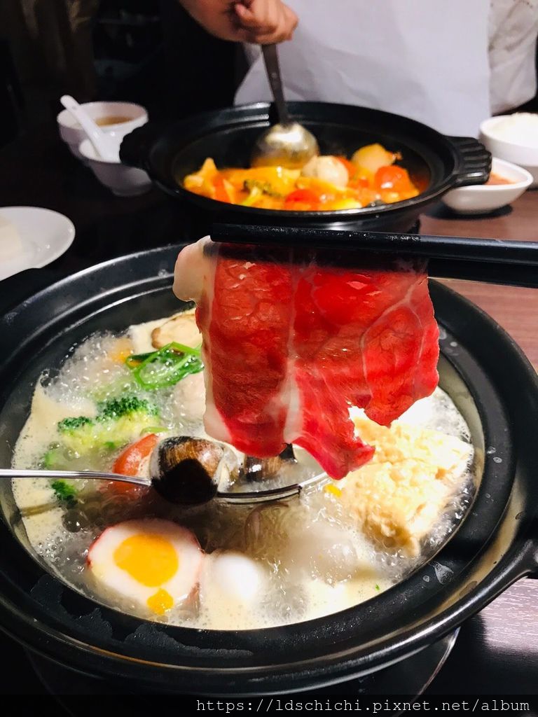 我跟小幫手一個人選雪花牛肉鍋一個人選綜合海鮮鍋