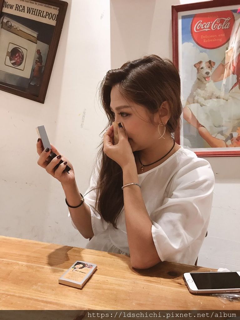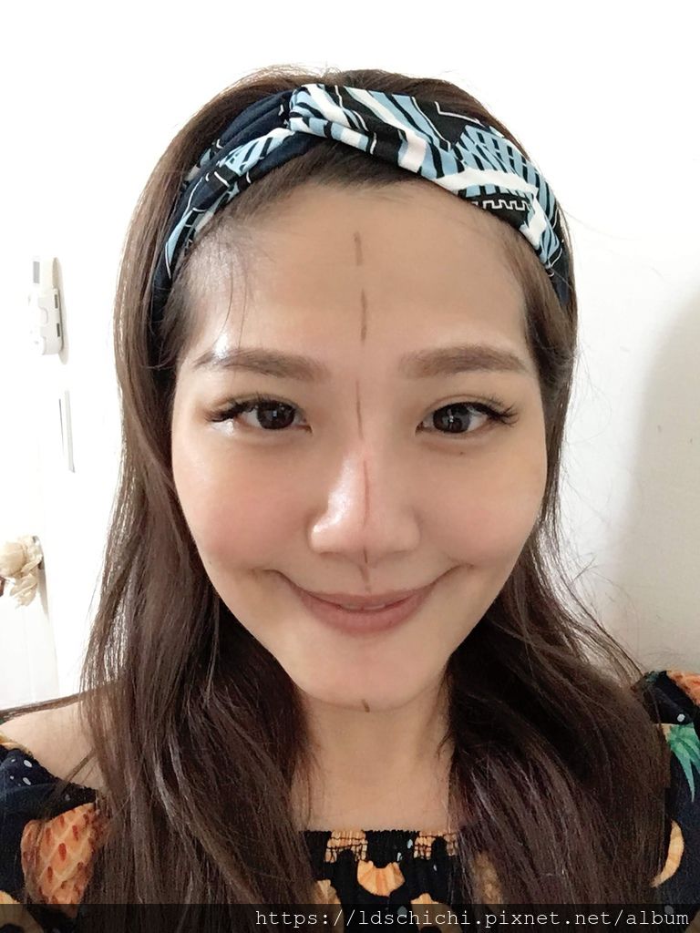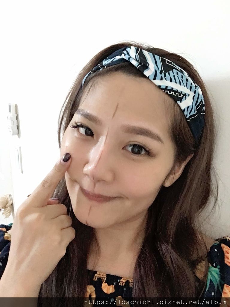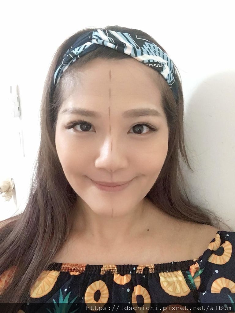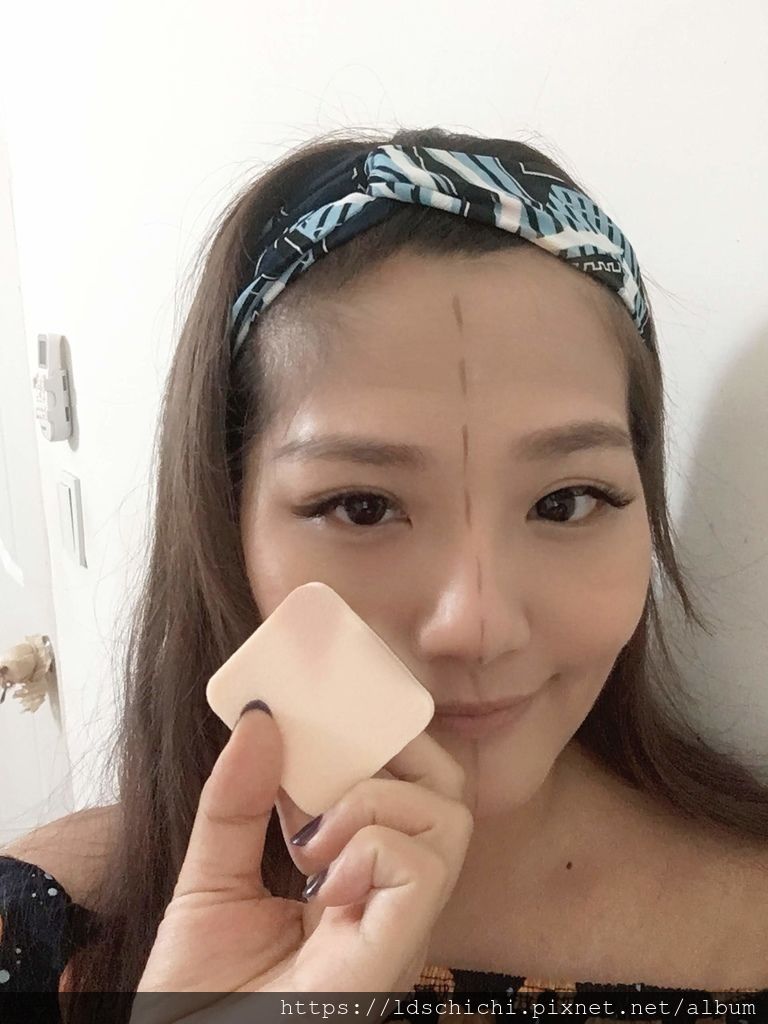 為區別兩色補妝蜜粉餅我將臉分成兩邊