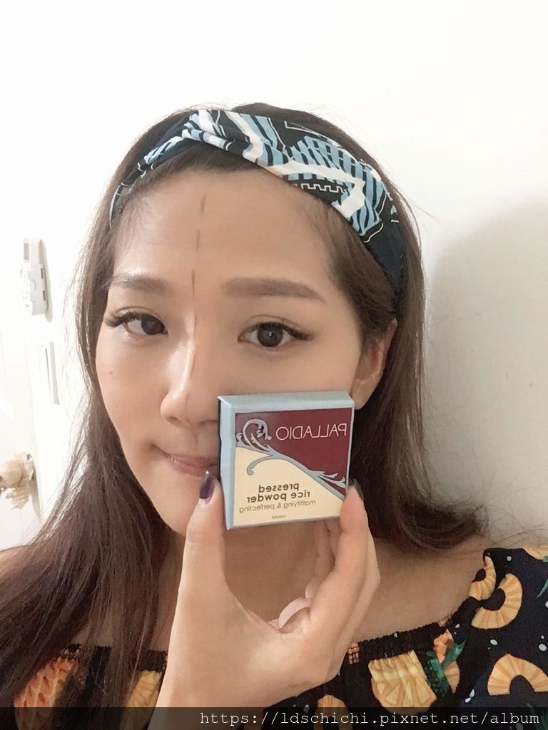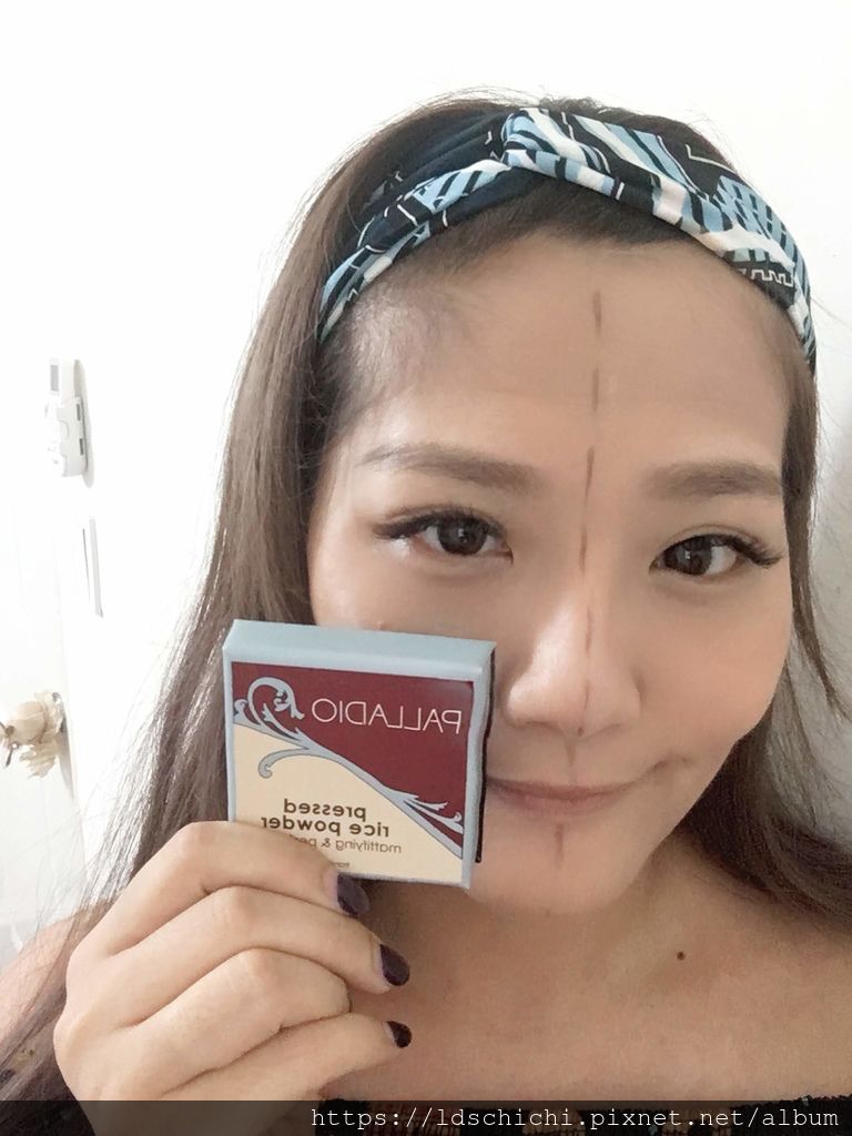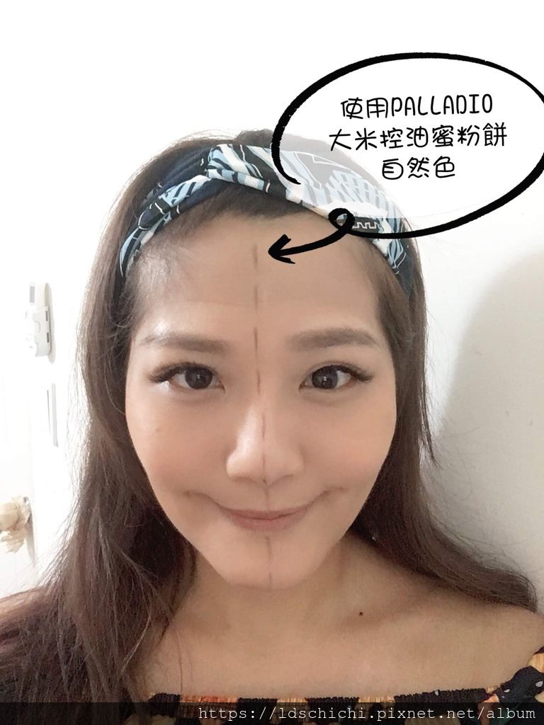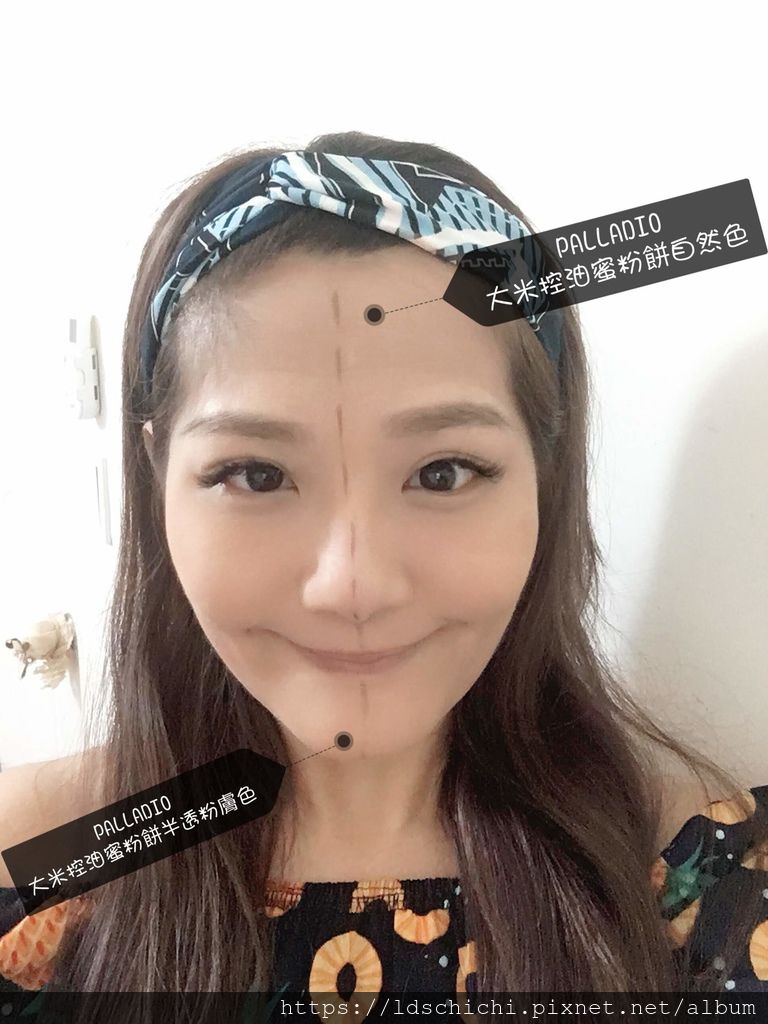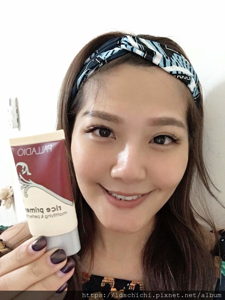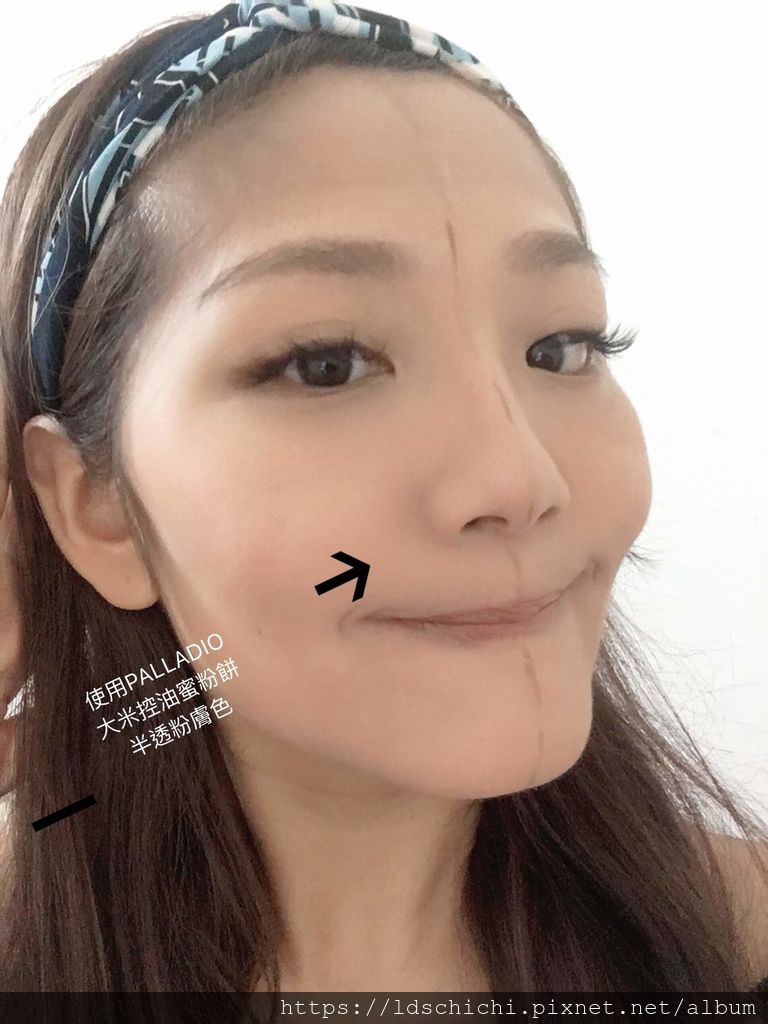 有用PALLADIO大米柔焦妝前乳打底的右邊感覺比較粉~