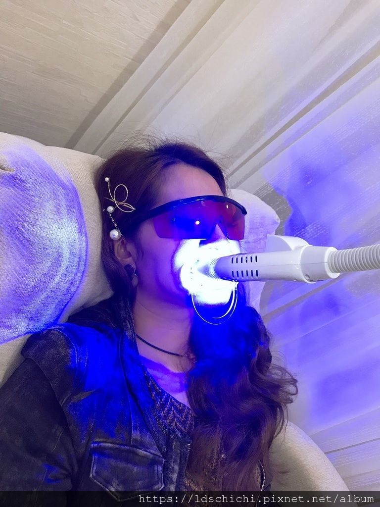 戴著闊嘴器可以比較好檢視牙齒狀況 塗凝膠跟照光比較均勻