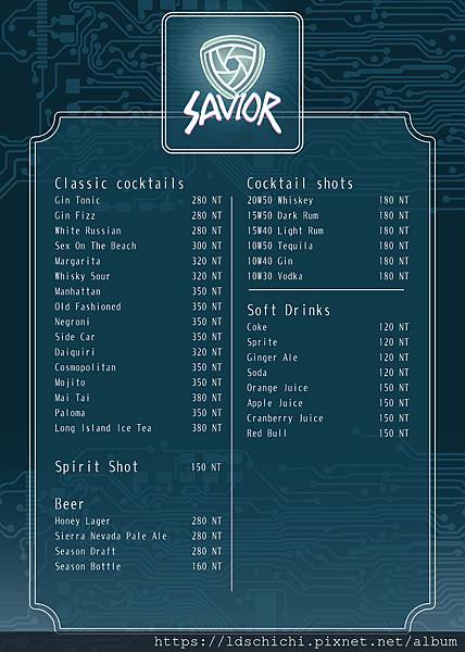 除了經典調酒也有Savior Lounge Bar的特調及啤酒喔~