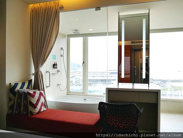 床旁邊有個小沙發可以躺著看風景~或欣賞朋友洗澡