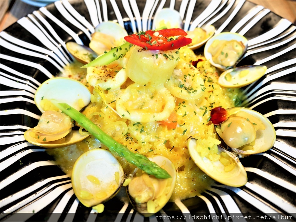 這黃澄澄的主餐是干貝海鮮南瓜燉飯