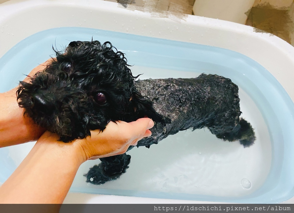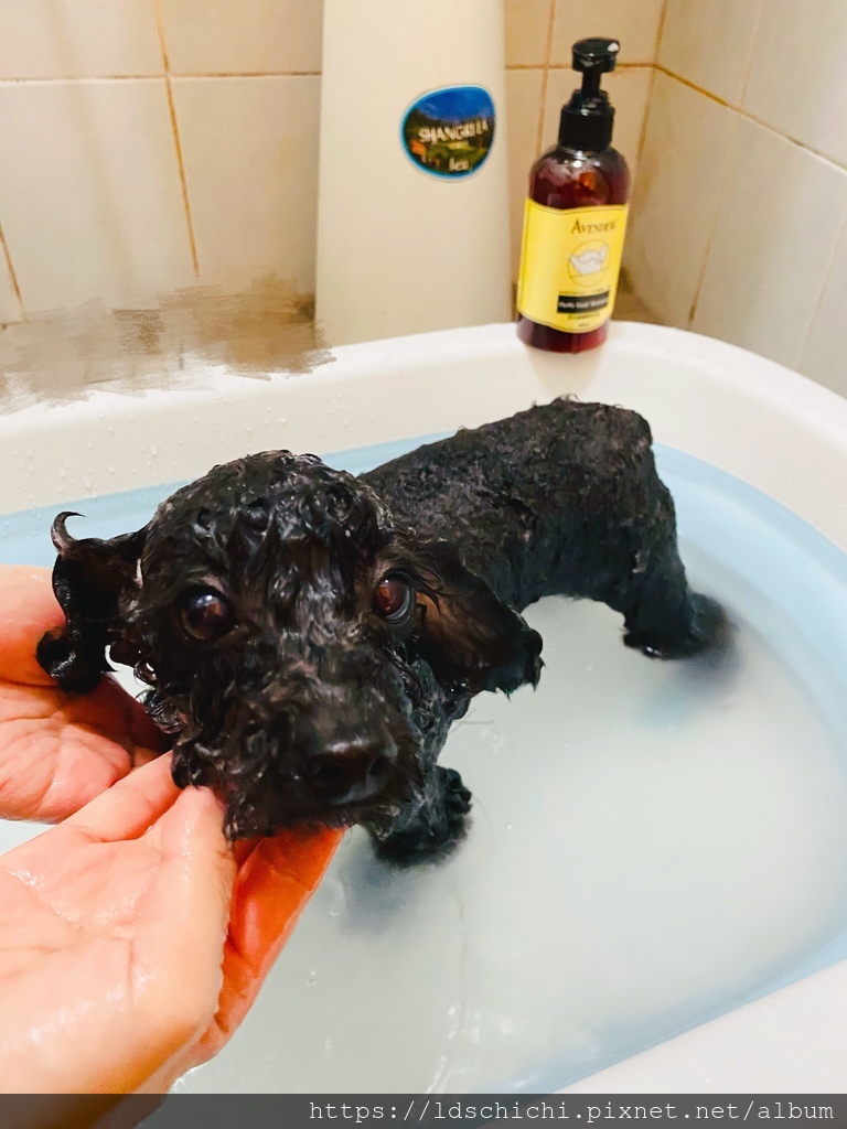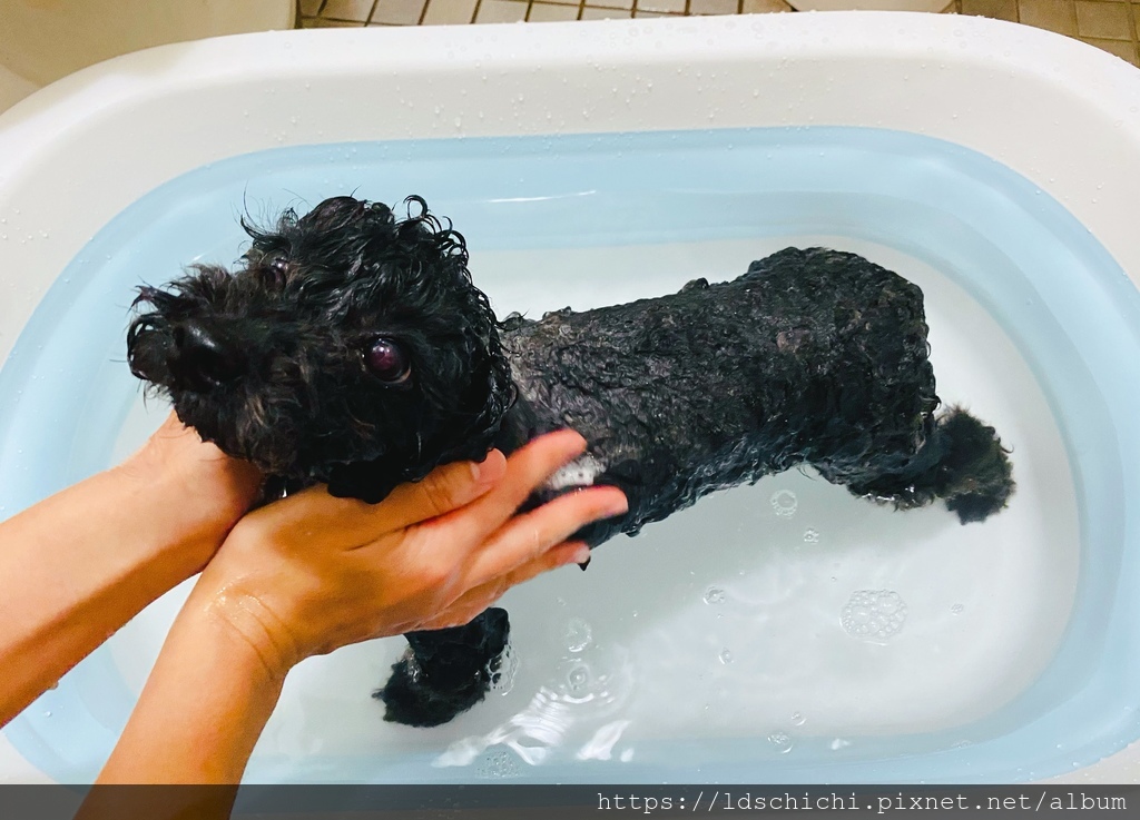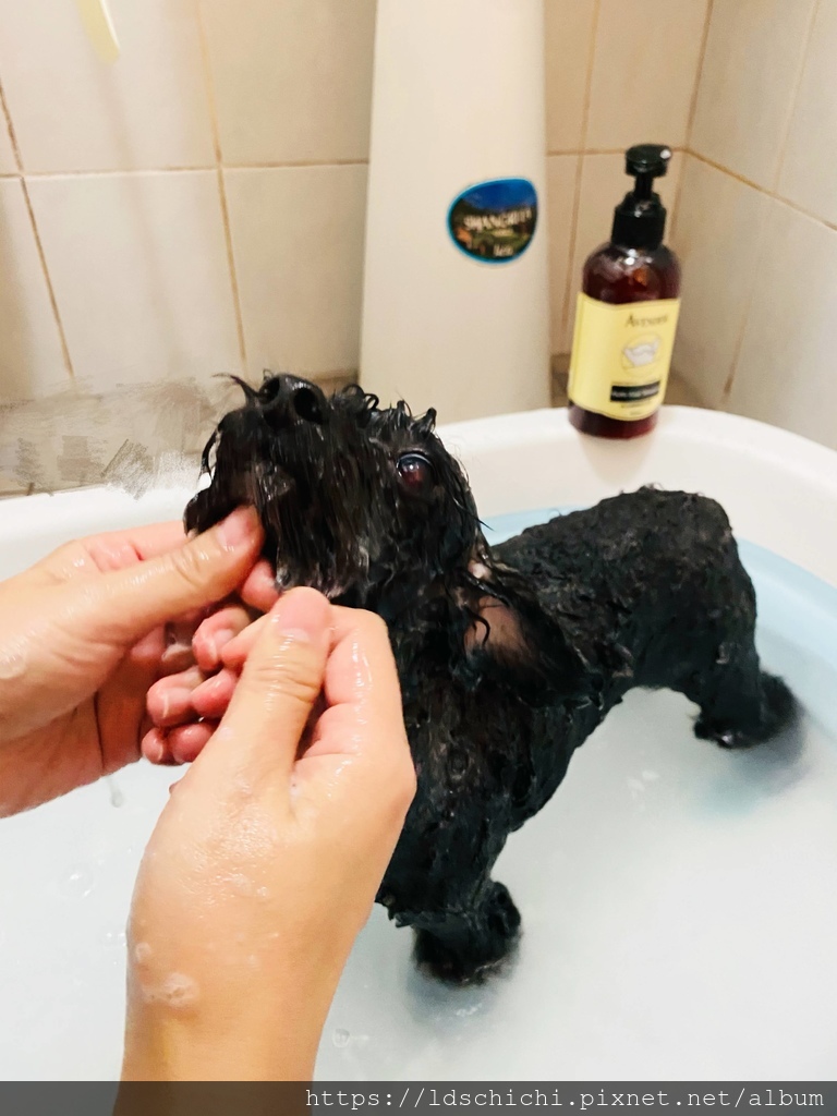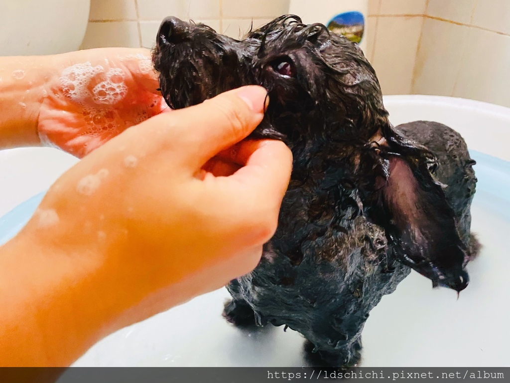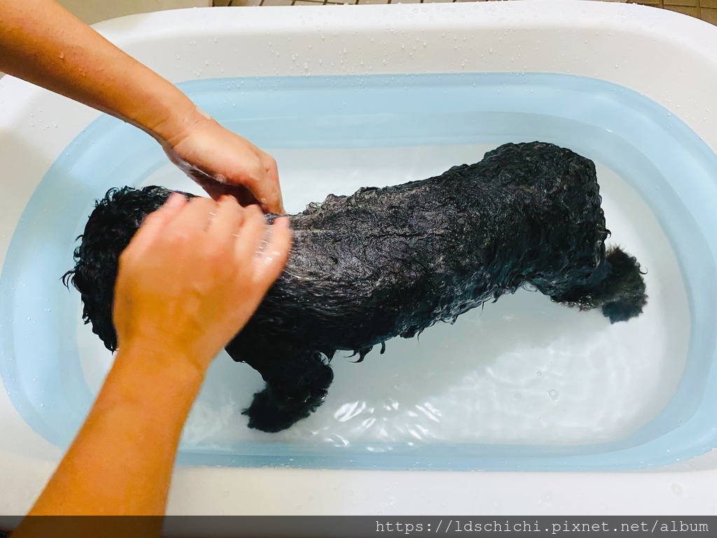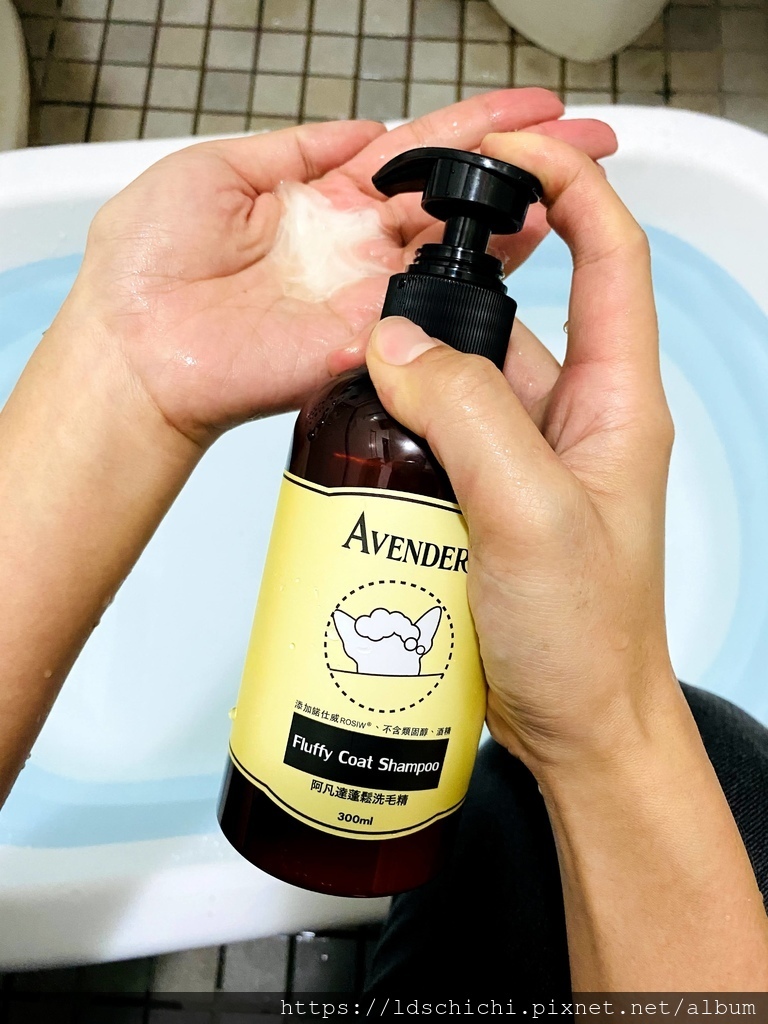 再用阿凡達的犬用蓬鬆沐浴露在毛髮上搓出泡泡~