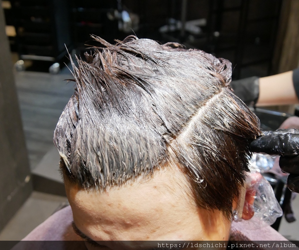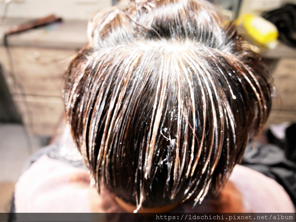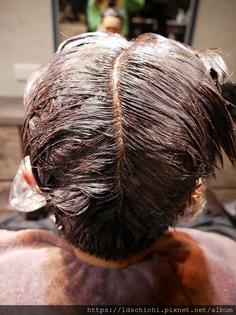 確認溝通後就請助理幫小幫手上頭皮隔離~準備染髮囉~