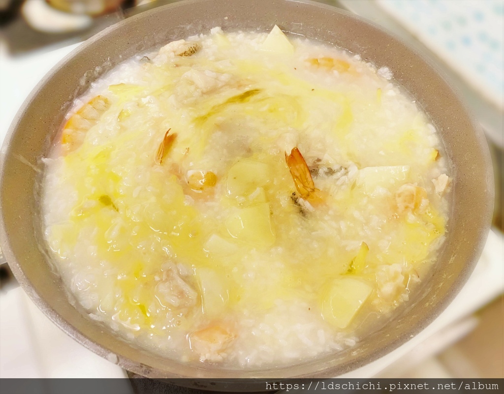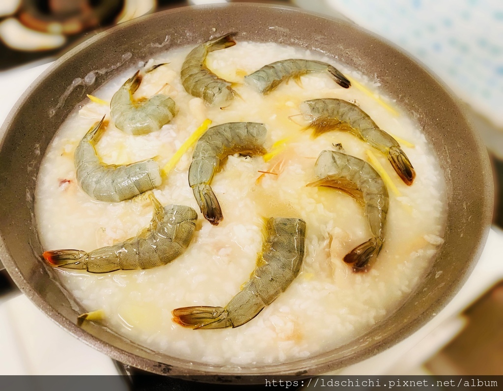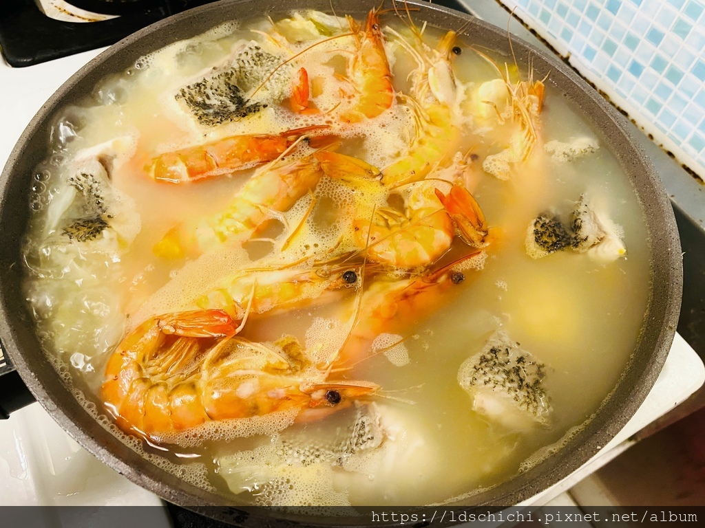 最後將海水晶晶蝦下鍋煮熟加蛋花即可喔~
