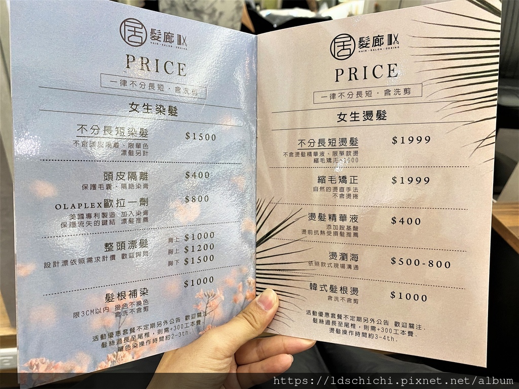 居髮廊板橋店有公開透明的價目表