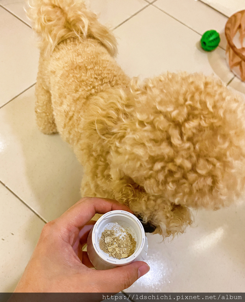 我自己聞了一下有點像我平常給他們吃的海藻粉的味道