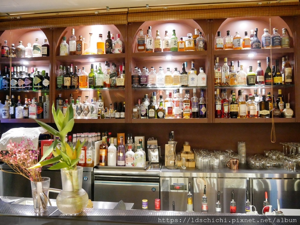 吧台內擺放整齊的酒類看了實在賞心悅目