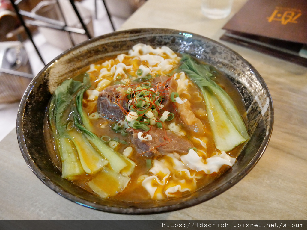 主菜我們選擇紅燒村牛肉麵(半筋半肉)及泰香打拋豬飯