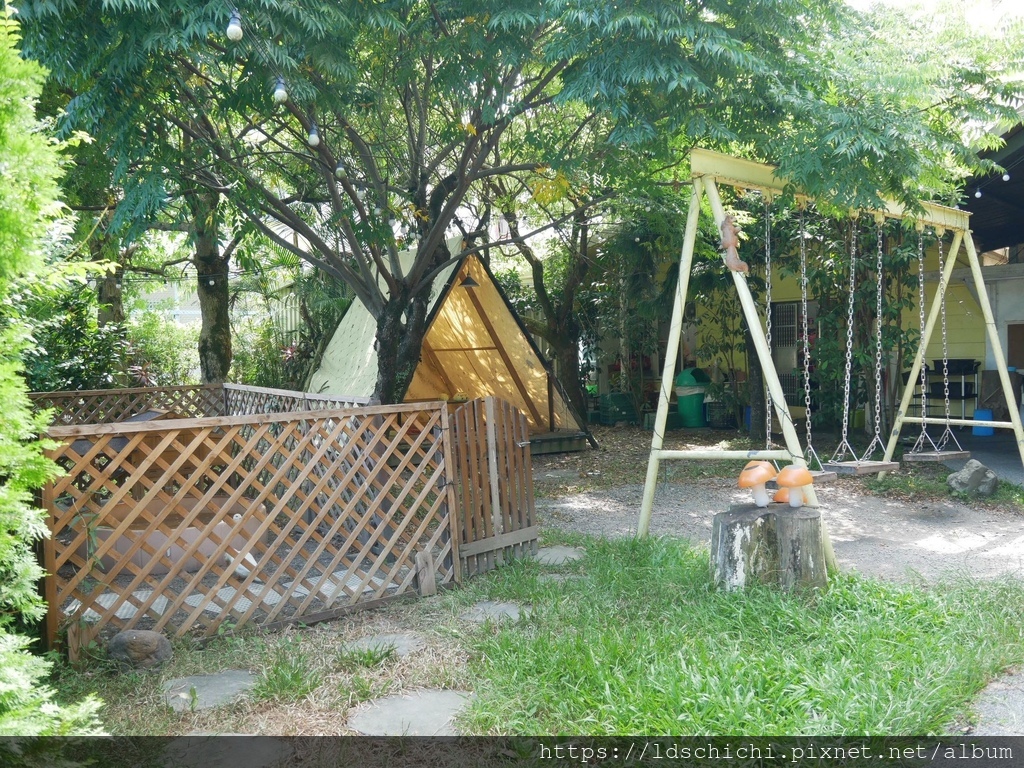 小朋友吃飽飯還可以在外面盪鞦韆~