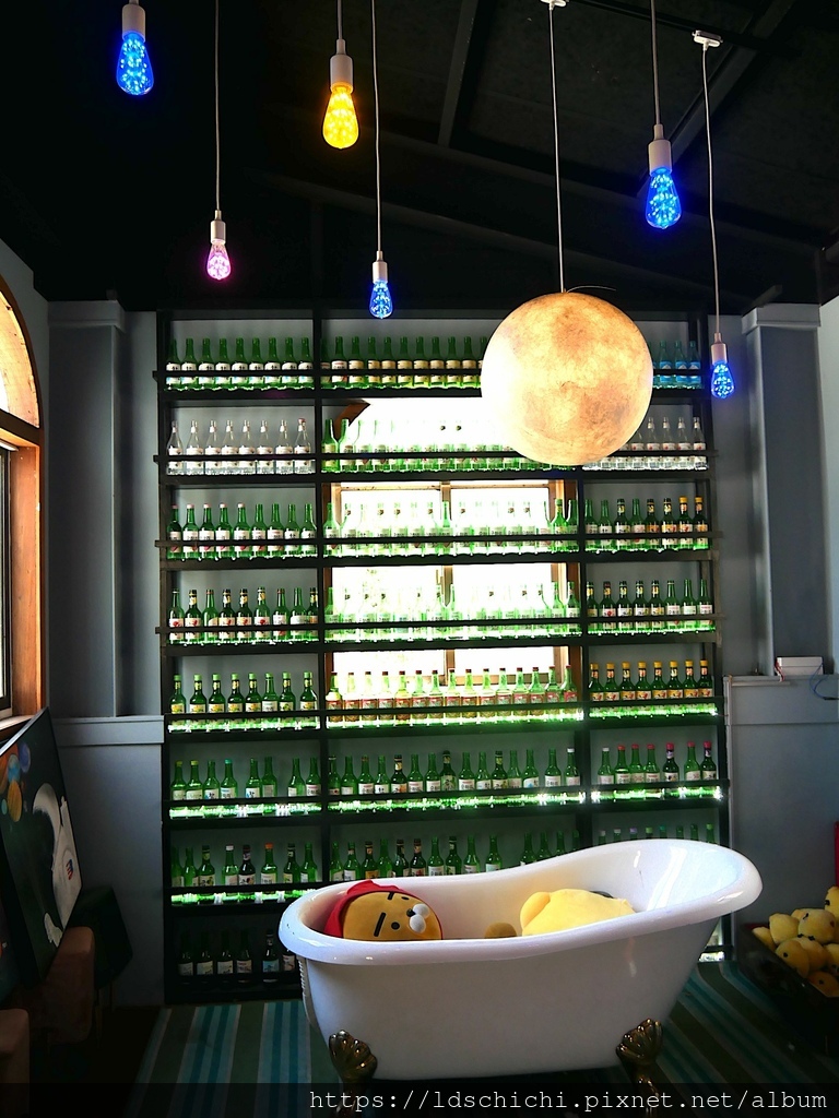 用滿滿的韓國真露酒瓶裝飾整面牆~好療癒啊